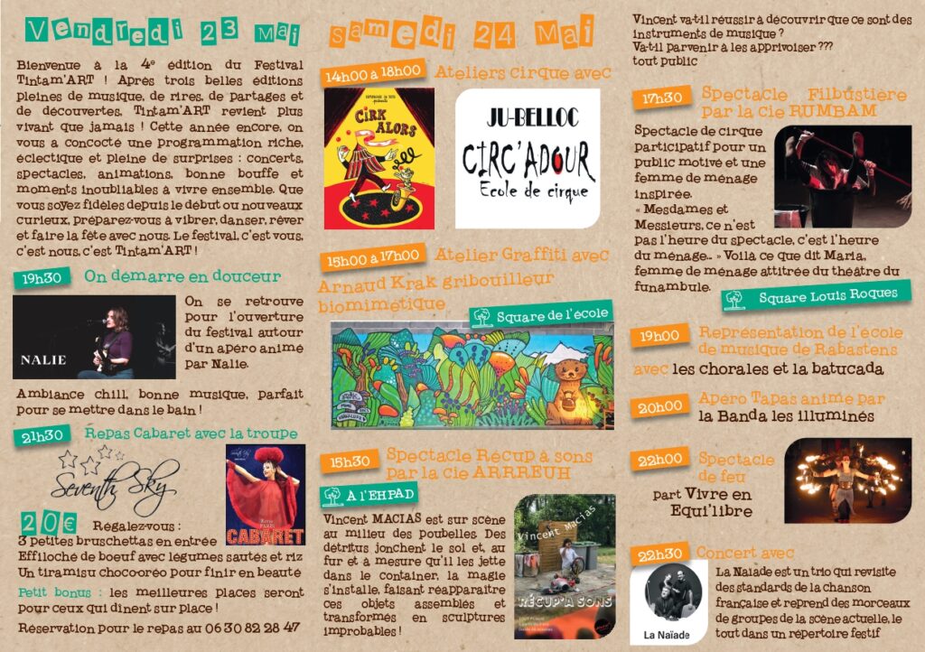 L’association Rural Arts 65 a voulu une programmation privilégiant bien sûr les artistes locaux afin de permettre au plus grand nombre de découvrir les ressources culturelles que possède notre territoire, mais sans fermer la porte aux artistes venant d’un peu plus loin. Le festival aura toujours à cœur de mettre en lumière les artistes locaux sans faire de concession sur la qualité des spectacles proposés.